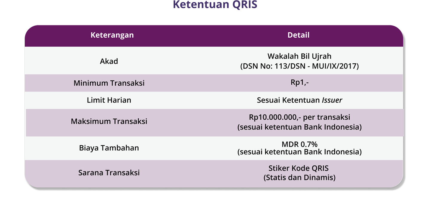 Jumlah minimum pembayaran untuk transaksi dengan QRIS M Syariah adalah Rp1 dan maksimum pembayaran tergantung dari masing-masing bank issuing